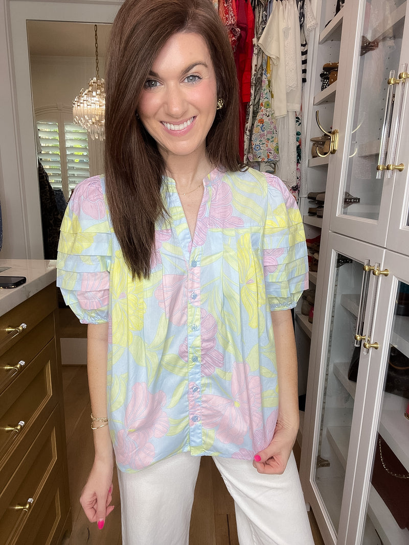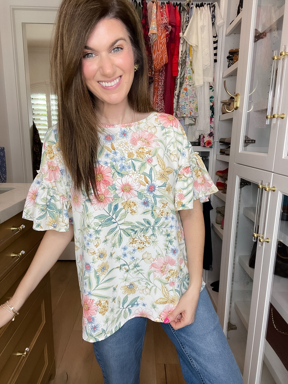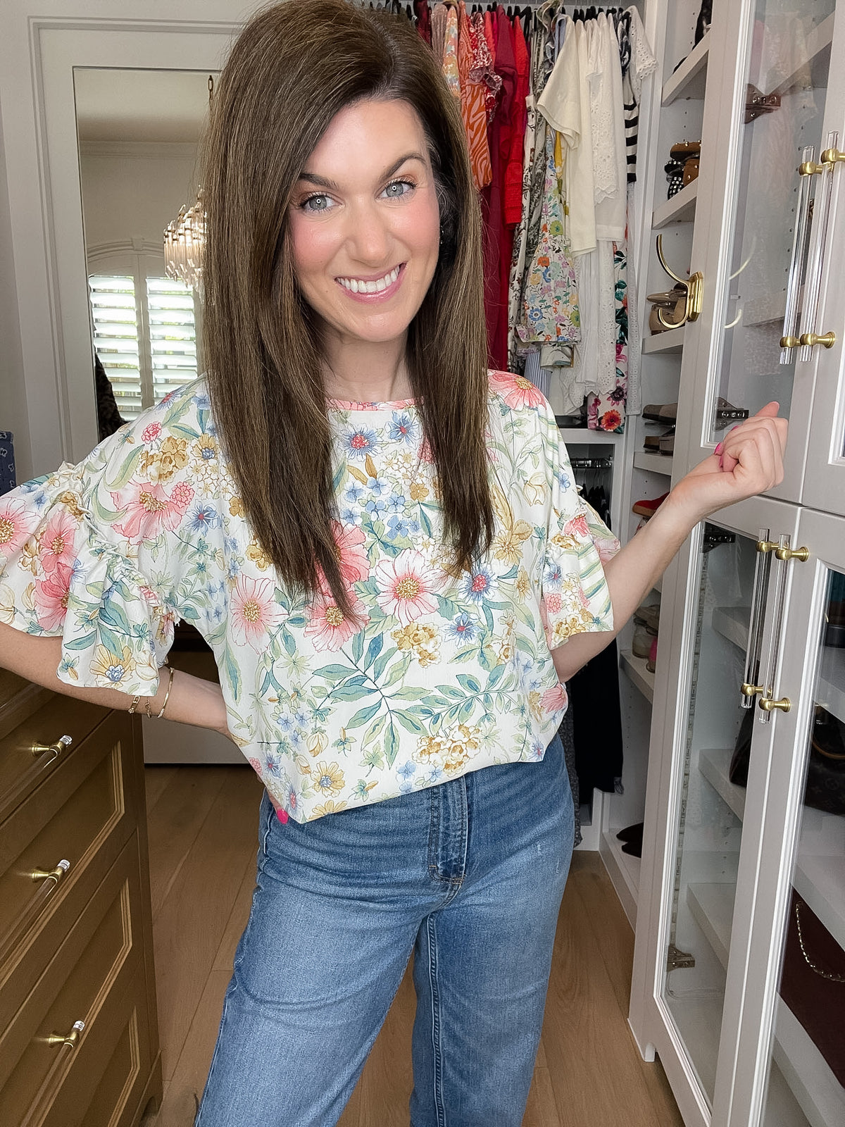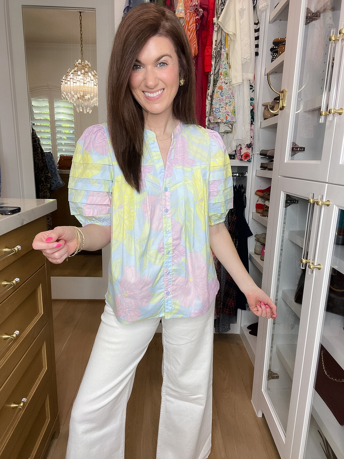 This top is even prettier in person with the soft floral print. The fit is relaxed and easy, with just enough detail in the sleeves to make it feel special. And for $36, you really can’t beat the quality—I know I’ll be wearing this one on repeat!