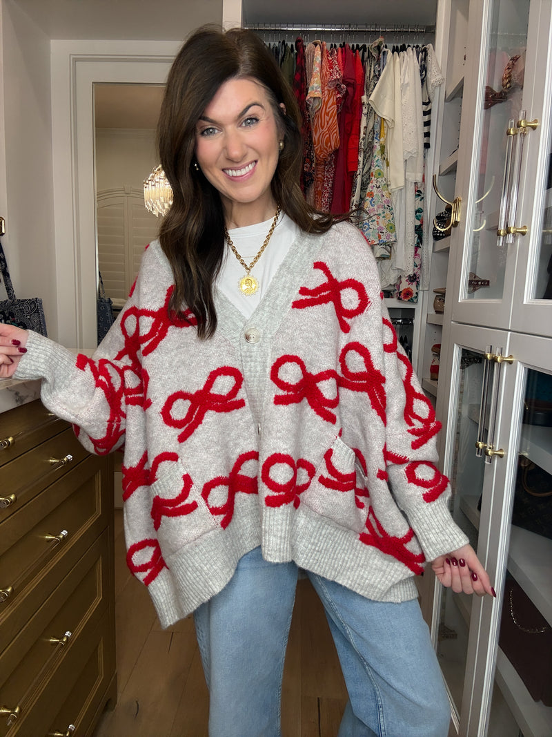 Bows & Bliss Cardigan in Gray